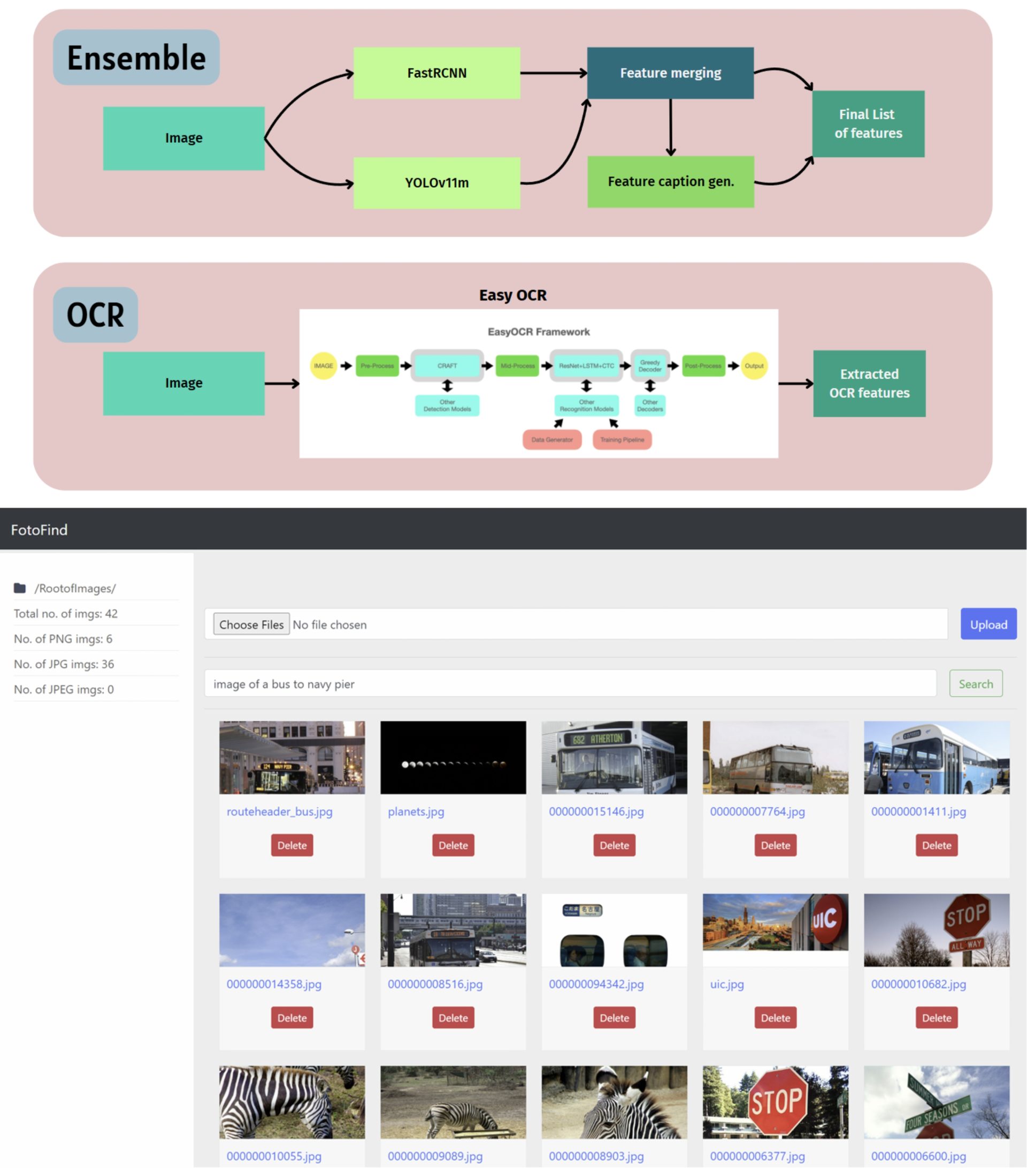 The dramatic rise in digital image creation has presented modern systems with massive repositories of visual data. Managing, indexing, and retrieving relevant images is crucial now due to the various forms in which photos are stored, from personal photo libraries to organizational databases, scientific imagery surveillance data, etc. Conventional solutions often rely on user-generated tags or rudimentary filenames, providing only limited search capabilities. Such manual metadata tagging can be inconsistent and quickly becomes infeasible for extensive datasets. To address these bottlenecks, FotoFind implements a pipeline of advanced computer vision and natural language processing models to glean semantic information from images automatically. The synergy of object detection, captioning, and OCR ensures that each image, regardless of its content, gains enriched metadata that can be leveraged to facilitate more nuanced text-based searching. The aim is to streamline and automate a process that would otherwise depend heavily on manual labor.